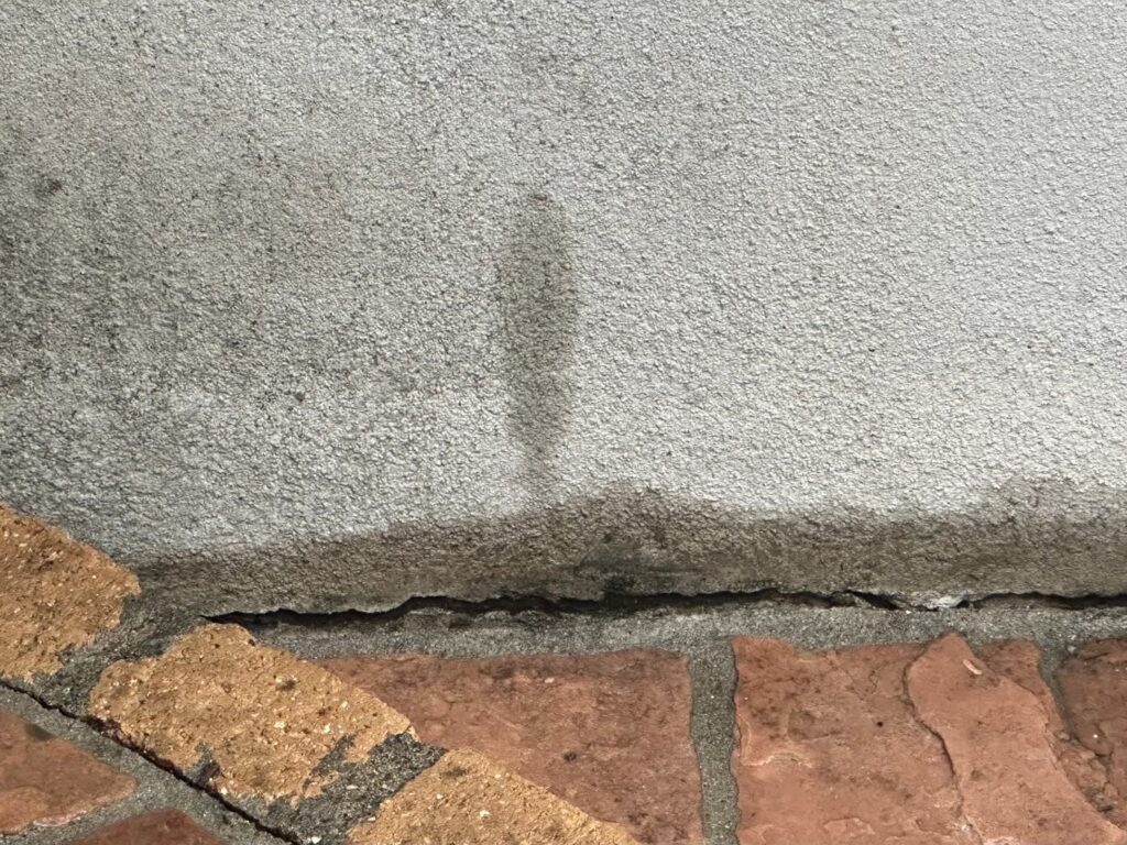 まず現場を確認すると、タイル土間と基礎の境目に数ミリから1センチほどの段差があり、わずかに隙間ができていました。この部分にゴミや水がたまりやすく、美観を損ねるだけでなく、冬場の凍害や経年劣化によるヒビ割れを引き起こすこともあります。そこで今回は、モルタルで隙間を埋め、なめらかに仕上げる左官補修を行いました。