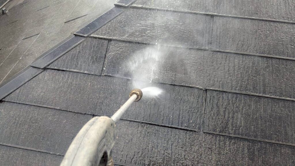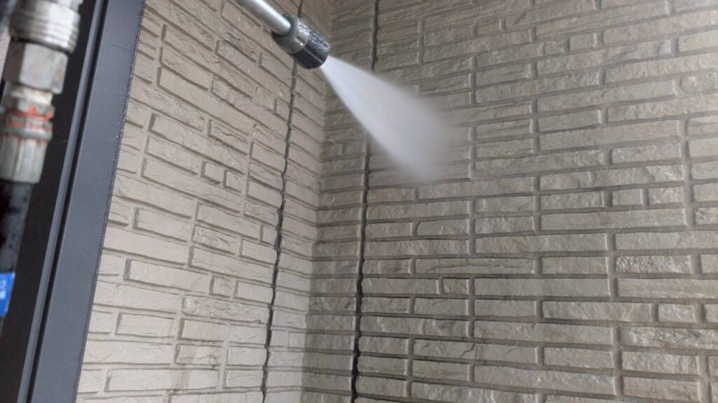 高圧洗浄は、外壁表面に付着した**汚れ・カビ・コケ・旧塗膜・チョーキング(白い粉)**などを、専用の高圧洗浄機でしっかり除去する作業です。