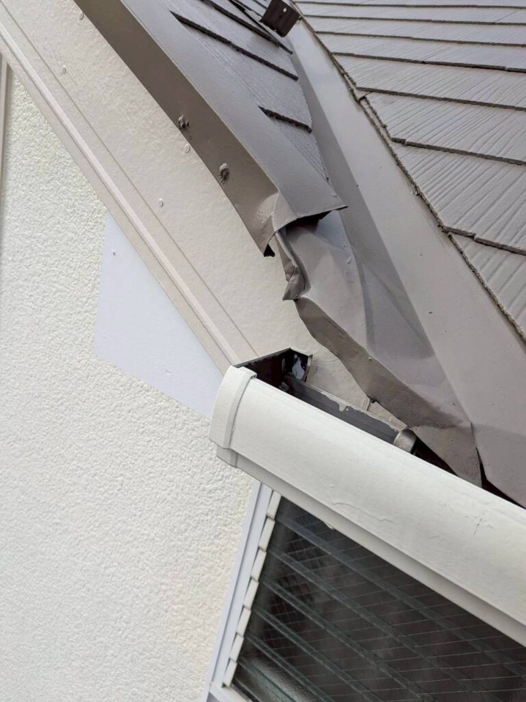 世田谷区にて「ケラバ板金変形による延長補修工事」を行いました。お客様から「屋根の端が波打って見える。」とご相談をいただき、現地調査をしたところ、ケラバ板金の先端部分が変形しており、風が入り込みやすい状態になっていました。