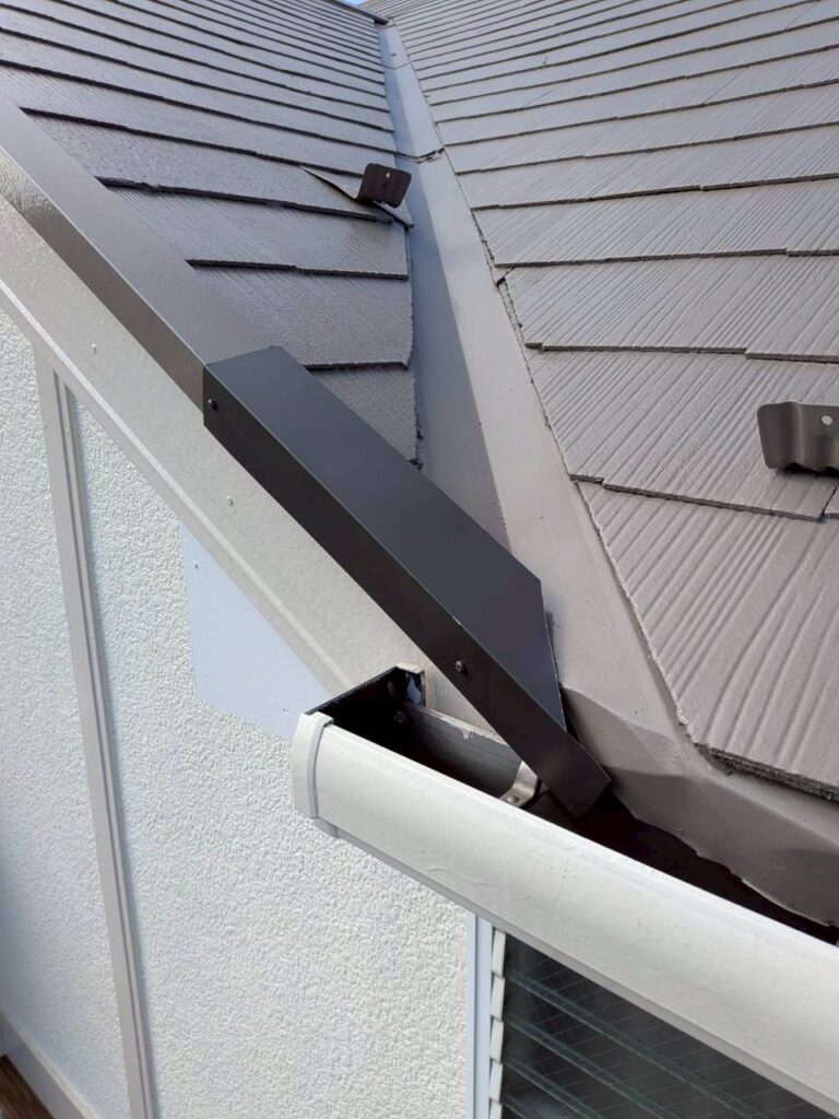 取り付けは、従来の釘ではなくステンレスビスでしっかり固定し、風で抜けにくい構造にしました。延長部分との重なりにはシーリング処理を施し、水が逆流しないよう雨仕舞いも丁寧に仕上げています。延長したことで屋根材とのかみ合わせが深くなり、以前より強風に強いケラバへと改善されました。