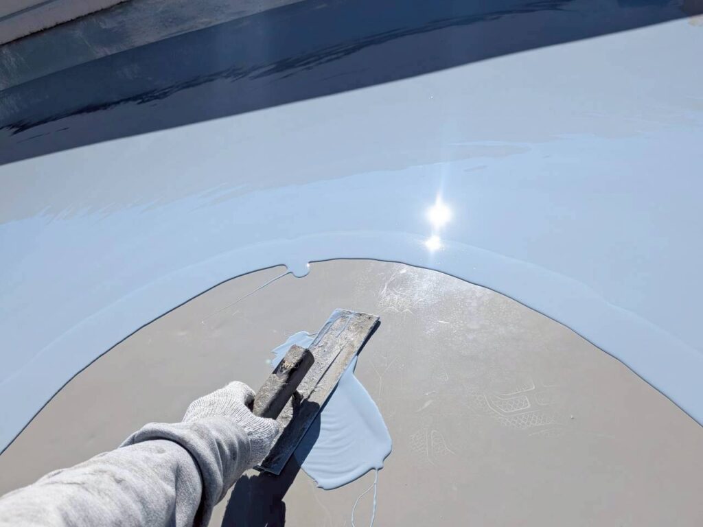 下地にたまった水分や湿気を外へ逃がしながら防水する、ウレタン防水の工法です。