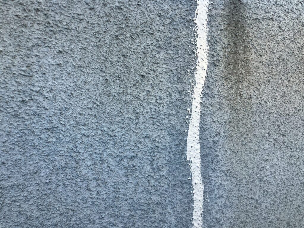 充填後はヘラで均し、周囲のモルタル面と馴染むよう丁寧に仕上げました。ひび割れ補修は見た目以上に重要な工程で、この作業を丁寧に行うことで、仕上げ塗装の耐久性も大きく変わってきます。