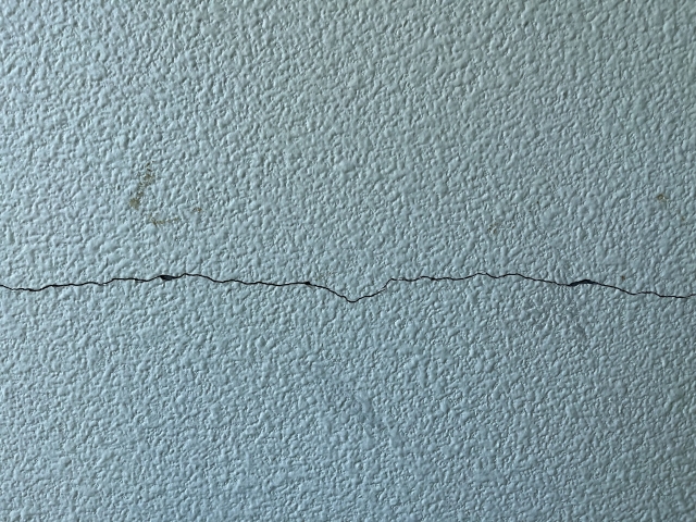もしズレや破損を見つけたら、ブルーシートで覆い、風で飛ばないようロープで固定する応急処置を行いましょう。放置すると次の雨で雨漏りにつながる恐れがあります。- ② 外壁のひび割れ