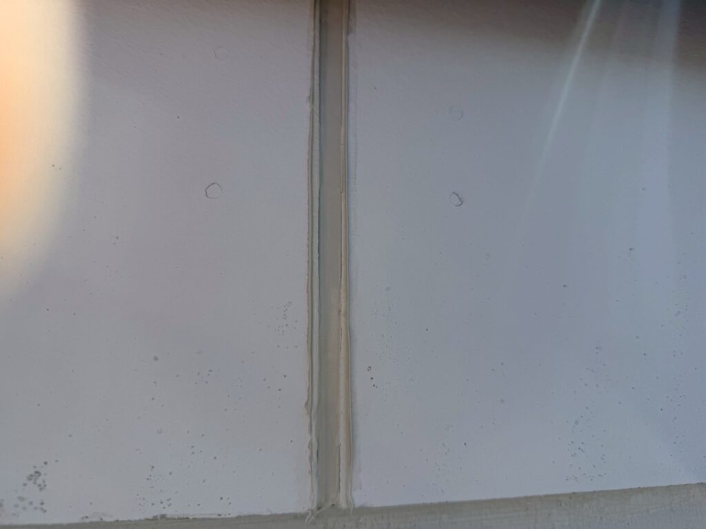 施工前 施工後 しかし、シーリング材は紫外線や風雨の影響を強く受けるため、年数が経過すると必ず劣化していきます。劣化症状としては、ひび割れ、肉痩せ、剥離、硬化などが代表的です。これらを放置すると、雨水が壁内部へ浸入し、柱や下地木材の腐食、断熱材の劣化、最悪の場合は雨漏りへとつながります。