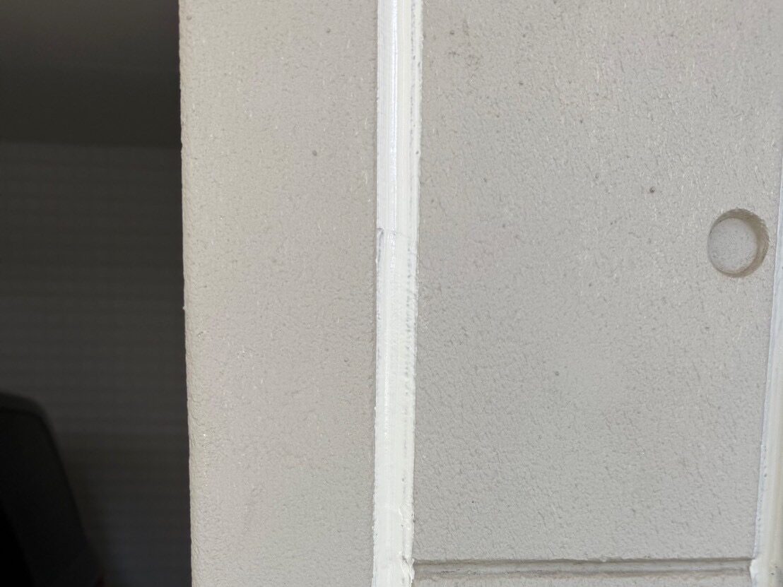 ヒビ割れ補修後 ヒビ割れ補修後 外壁塗装前のひび割れ補修は、建物を長持ちさせるために欠かせない工程です。ヒビを放置したまま塗装すると、隙間から雨水が浸入し、塗膜の膨れや剥がれ、さらには雨漏りや内部材の劣化につながります。補修を行うことで下地を健全に保ち、塗料の密着性と防水性を高め、仕上がりの美しさと耐久性を確保できます。