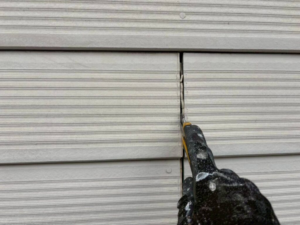 コーキングとは、サイディングボードの繋ぎ目部分にあるゴムのようなもので、これは建物が揺れた際などにおこる壁材への緩衝緩衝材の役目を担ってくれています。