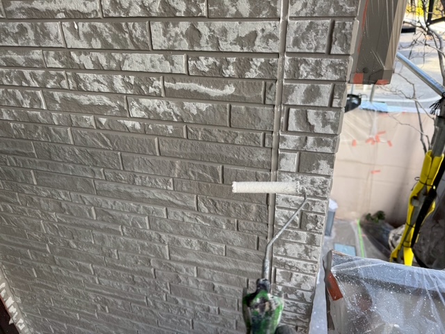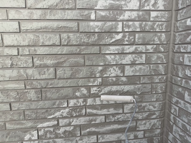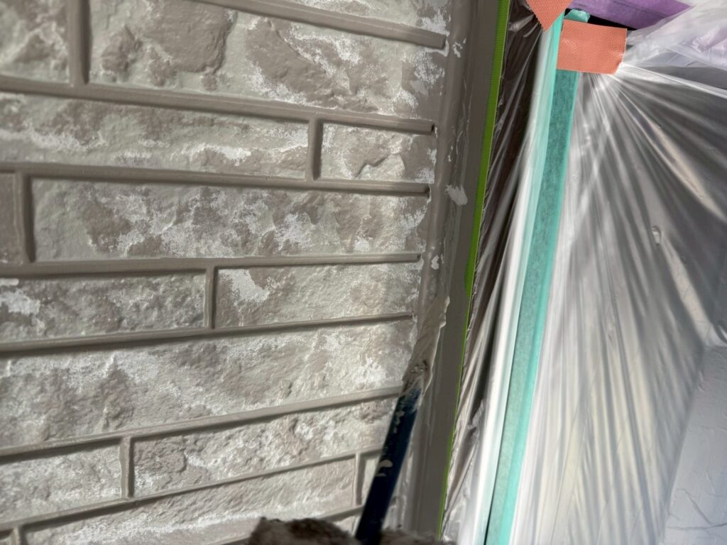 今回は美壁color工法のため、専用塗材を使用し2回に分けて丁寧に塗布しました。2回塗り重ねることでベースの色が安定し、色ムラを防ぎながら美しい仕上がりへと導きます。また、塗膜の厚みを均一に保つことで塗装の耐久性が向上し、外壁全体の保護性能をより高めることができます。