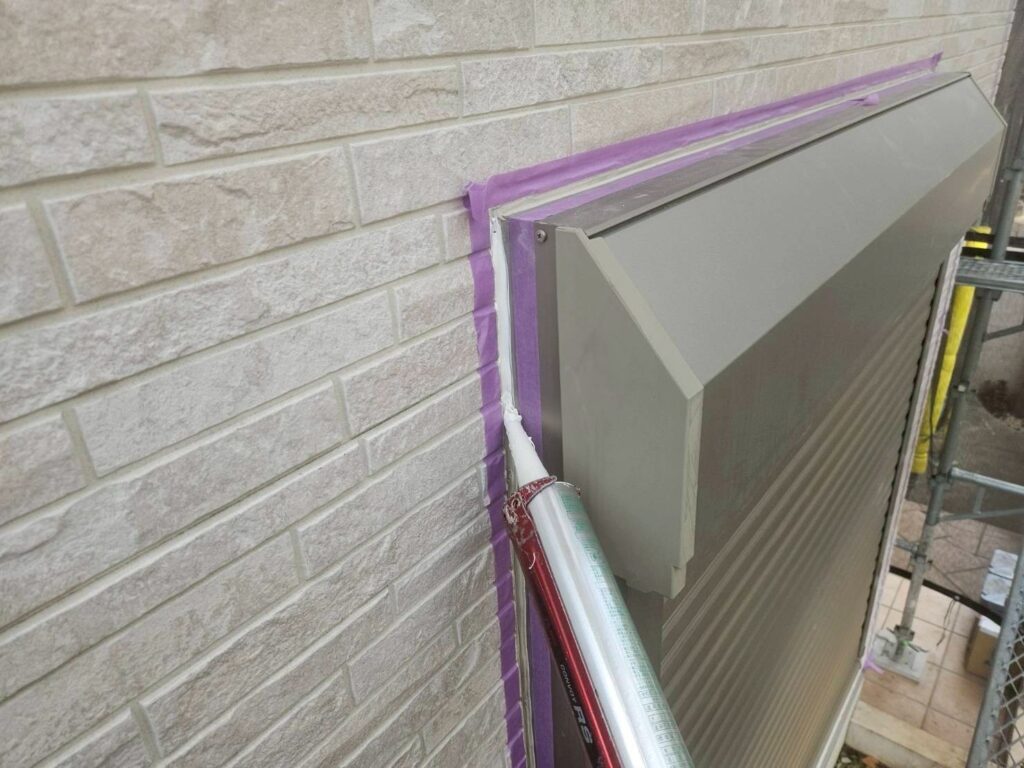 窓回りのみ状況に応じて、冊子をカッターで傷つける危険がある(傷つけてしまうと雨漏りの原因になる)場合は、既存の上から被せるように新しいコーキング剤を塗布していきます。